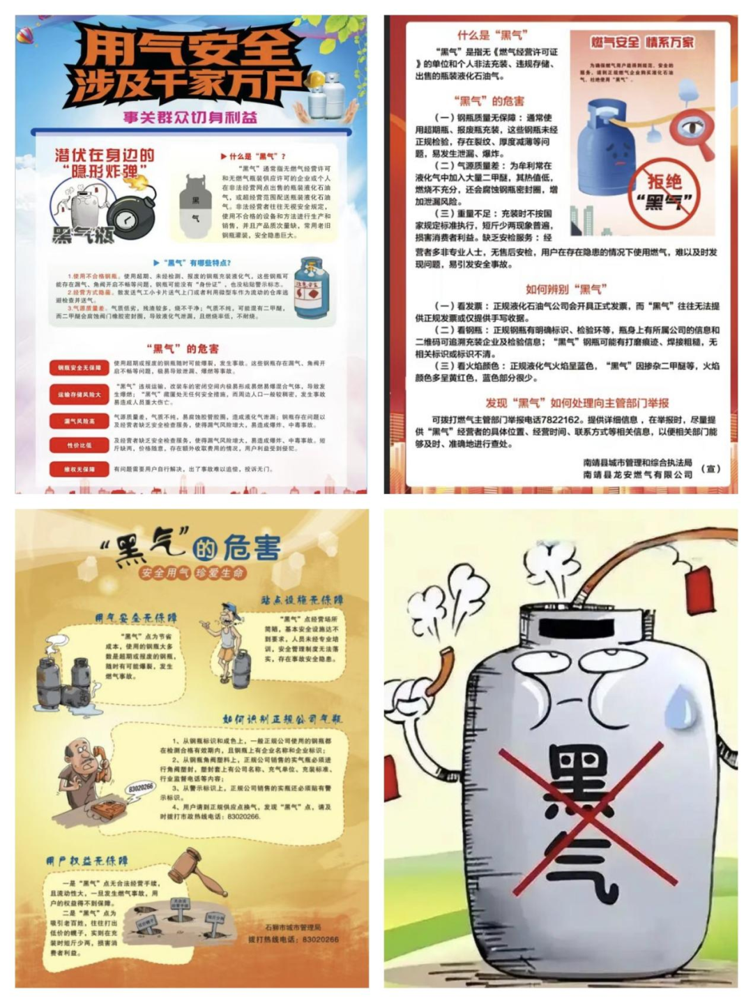 厦门、漳州、泉州、南平等地通过制作宣传材料、张贴海报、悬挂横幅、发送短信等多种方式,广泛向群众普及“黑气”识别知识与危害,引导公众自觉使用正规燃气,共同营造安全、规范的用气环境。