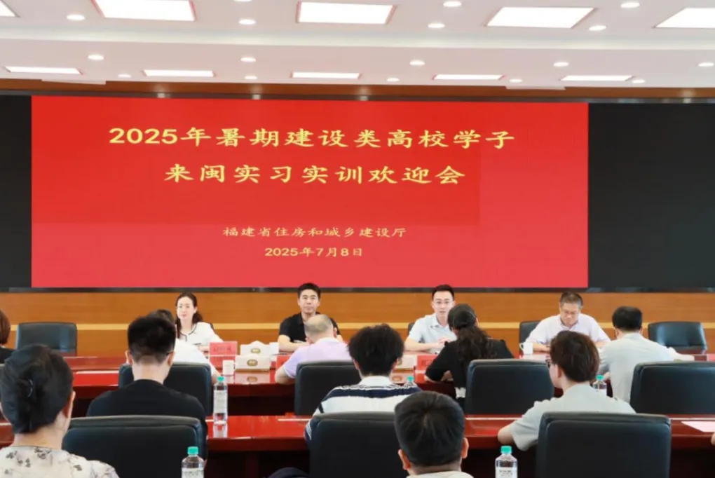 7月8日,省住建厅召开2025年建设类高校学生暑期来闽实习实训欢迎会,来自同济大学、浙江大学的12名在读博士、硕士生开启暑期来闽实践新征程。厅党组成员、副厅长蒋金明出席欢迎会并讲话。