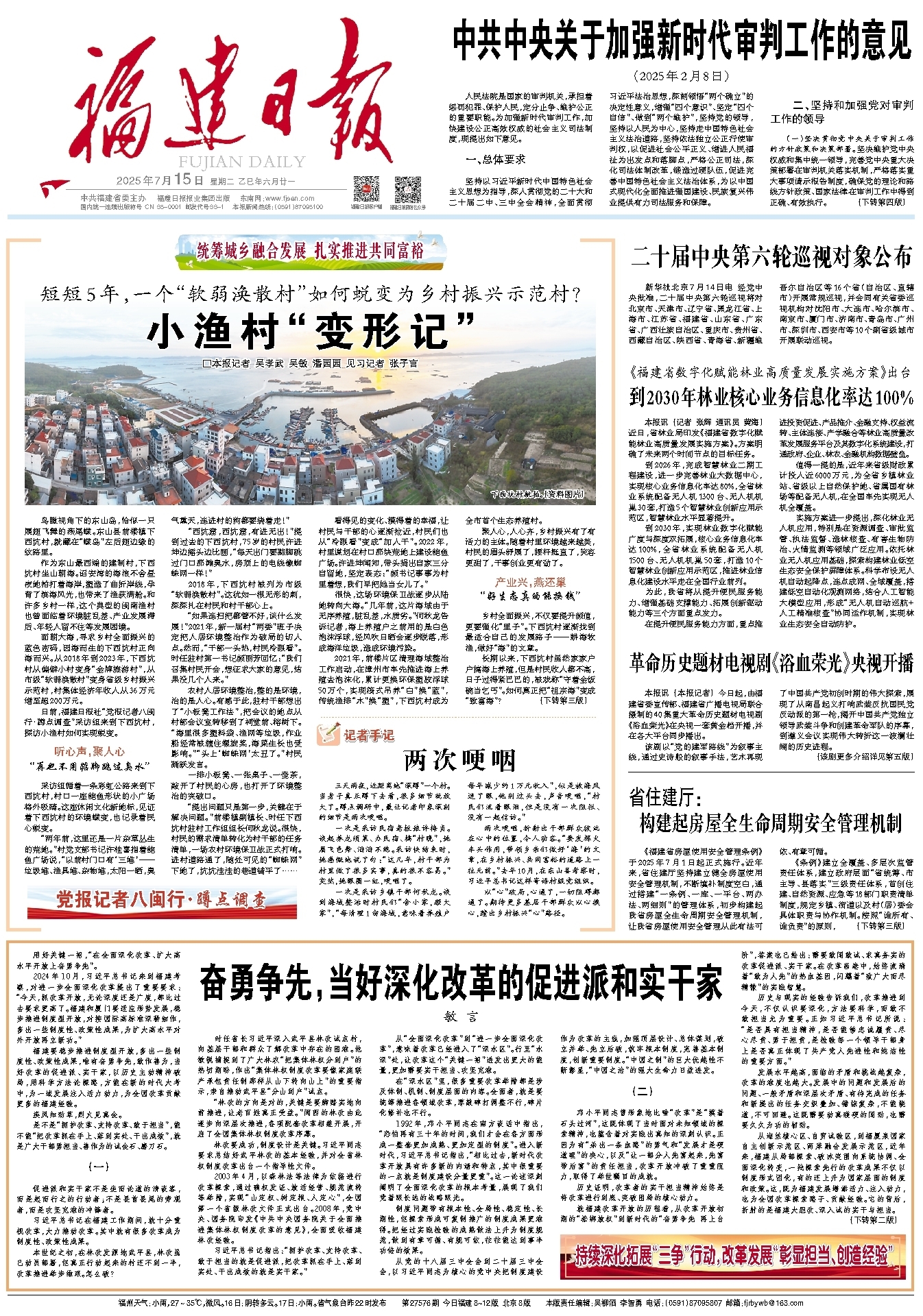 《福建省房屋使用安全管理条例》于2025年7月1日起正式施行。近年来,省住建厅坚持建立健全房屋使用安全管理机制,不断填补制度空白,通过搭建“一条例、一库、一平台、两办法、两细则”的管理体系,初步构建起我省房屋全生命周期安全管理机制,让我省房屋使用安全管理从此有法可依、有章可循。