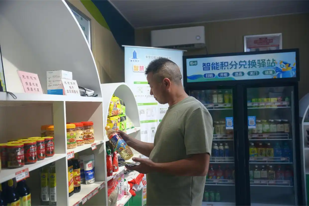 福州灰炉新苑小区居民使用通过垃圾分类获得的积分兑换商品(9月13日摄)。新华社记者 李昊泽 摄
